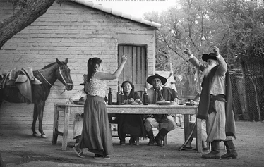 Pitkään odotettu Piemonten tryffelinmetsästäjät – ohjaajien uutuus GAUCHO GAUCHO sijoittuu täysin erilaiselle, mutta yhtä osuvasti ainutlaatuiselle seudulle. Argentiinan pampalla eletään hevosten kanssa ja hevosten ehdoilla. Päähenkilöksi nousee miesten maailmassa omaa tilaansa vaativa nuori Gauda, joka harjoittelee hevosten kesytystä ajan karhentamien konkareiden kanssa. Kylän koulun opettaja vaatii Gaudaa pitämään koulupukua huonolla menestyksellä. Ratsastajan asuun, nahkasäärystimiin ja reilun kokoiseen baskeriin pukeutunut Gauda vastaa: ”Olen gaucha, ja tämä on minun asuni!”.