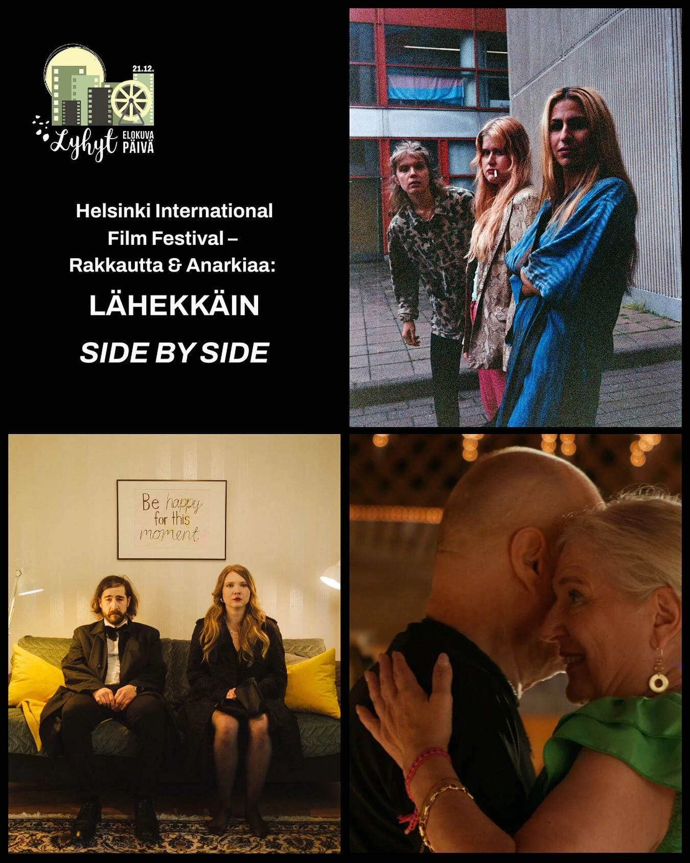 Näytämme illassa Lähekkäin -elokuvapaketin, jonka on koonnut Rakkautta & Anarkiaa -elokuvafestivaalin @helsinkifilmfestival. Paketissa nähdään kolme syyskuussa festivaalin Kotimaisessa kilpailussa palkittua elokuvaa, joissa kaikissa ollaan jollain tapaa lähellä toista ihmistä. Elokuvat kuljettavat läpi erilaisten kohtaamisten lämmöllä ja huumorilla, vauhtia ja vaarallisia tilanteita unohtamatta!